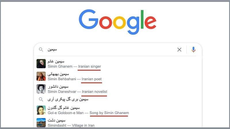 در حال حاضر گوگل اهمیت بیشتری به موجودیت کلمات میدهد. فرض کنید که کاربر کلمه «سیمین» را در گوگل جستجو میکند. حالا گوگل به صورت خودکار چند موجودیت مختلف از این کلمه از جمله نام خواننده، مکان، نام نویسنده و.. را به کاربر پیشنهاد میدهد تا بتواند موجودیت مرتبط را انتخاب کند و دقیقترین صفحات را ببیند.